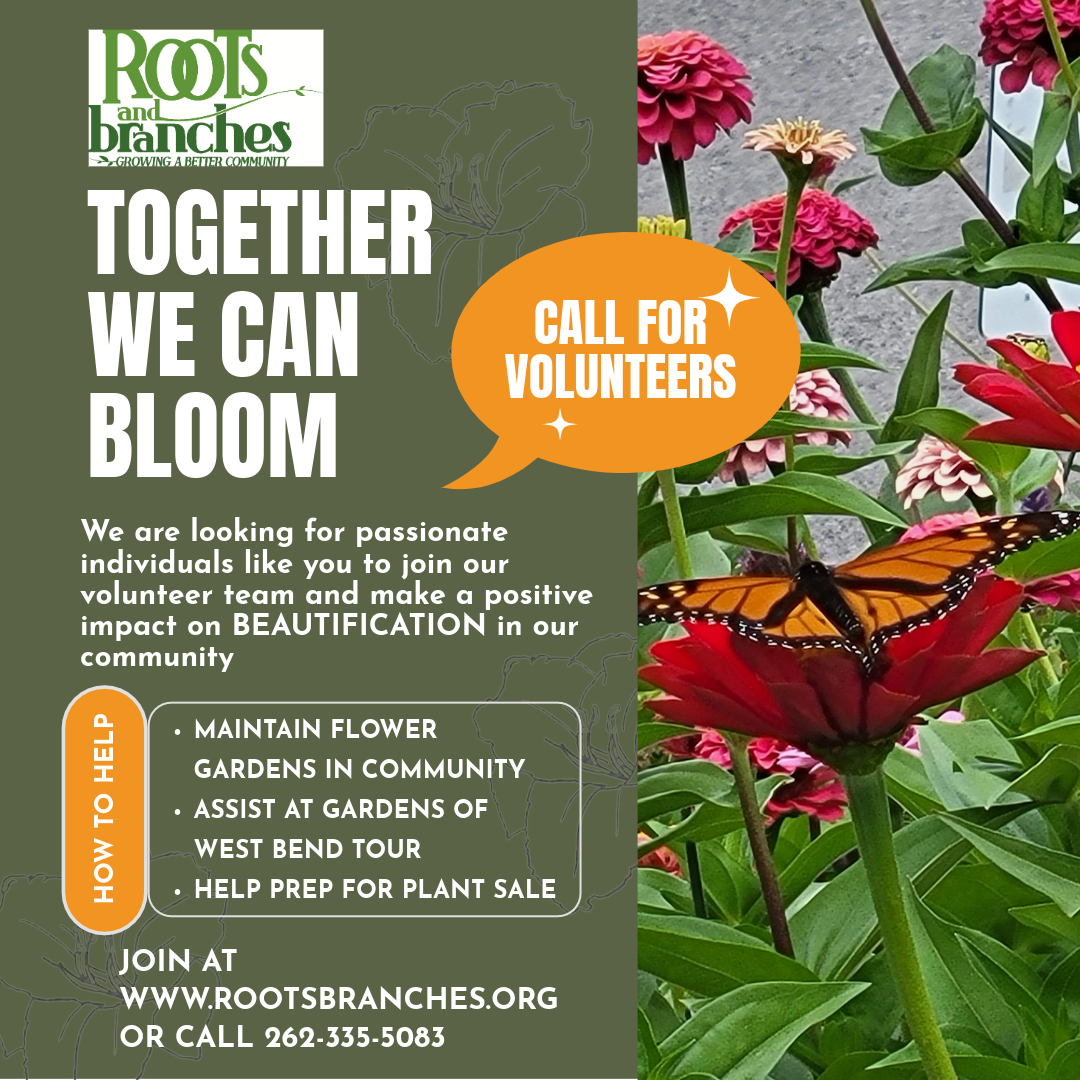Roots and Branches is a local non-profit positively impacting the natural environment of greater West Bend, WI. While we have ROOTS firmly established, we celebrate our 35th anniversary in 2025 by continuing to BRANCH out into the community. We honor the legacy of instilling pride and commitment to beautification through a variety of initiatives: