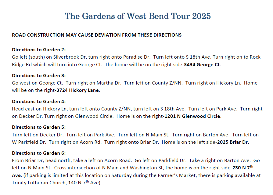 Self-guided tour of beautiful local private gardens open to the public.